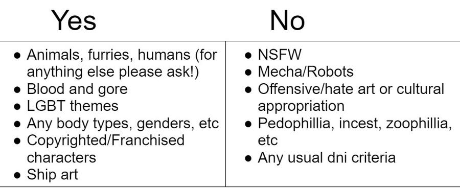 It's required that commissioners read my TOS before purchasing a commission to avoid misunderstandings. Please ask questions as needed.